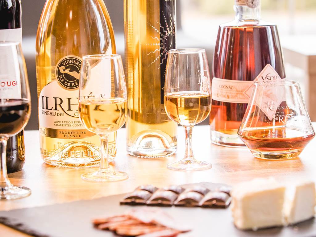 Immersion in the world of Rétais Spirits accompanied by local productsAfter visiting the distillery and the cellars in Cognac and Pineau des Chrentes and discovering how we make our wines and spirits, taste a wine, a Pineau and a Cognac from the Vignerons de l'Île de Ré accompanied by sausage, goat cheese and chocolate from the island.
